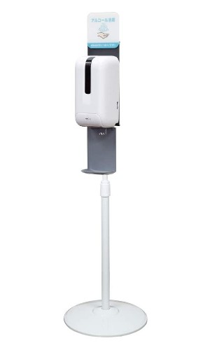続いては、スタンドの高さを調節できる、自動タイプの「消毒液スタンド」。