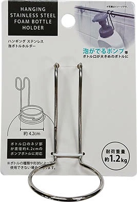 セリア(100均)では、『ハンギングステンレス泡ボトルホルダー』という「ディスペンサーホルダー」が販売されています。