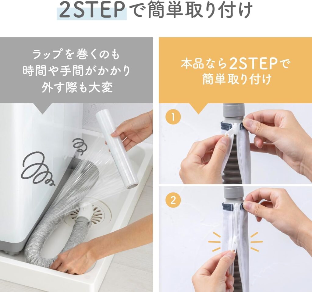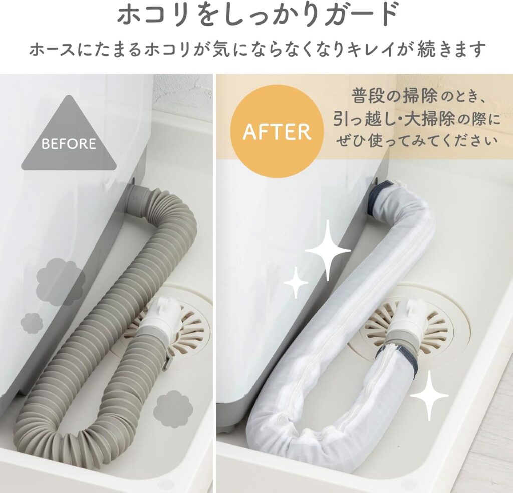 ホース全体をカバーできるものや、洗濯機下の掃除がしやすくなるもの、排水溝のホコリを防ぐものなど、さまざまな製品が登場しています。