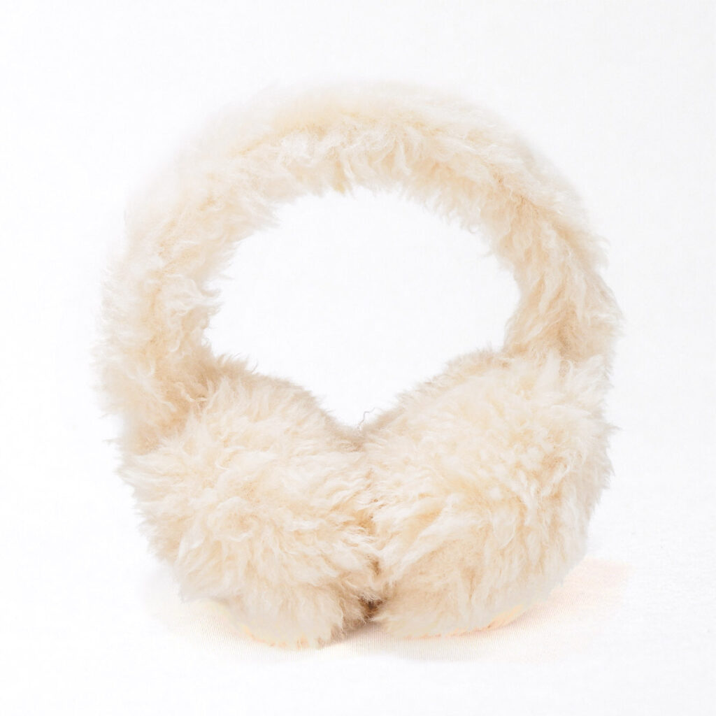 もこもことしたフェイクファー素材で作られた「耳当て(イヤーマフ)」で、肌触りが良く、防寒性も高いです。