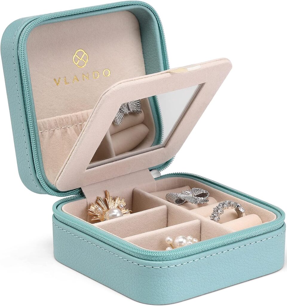 1.【持ち運び用】Vlando ミニ宝石箱 ミラー付き