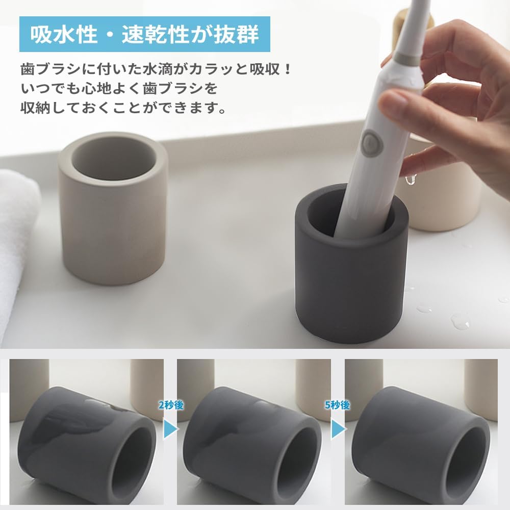 電動歯ブラシを入れていても安定感があるし水滴なども吸収霧散させてくれるので使い勝手も見た目も満足です