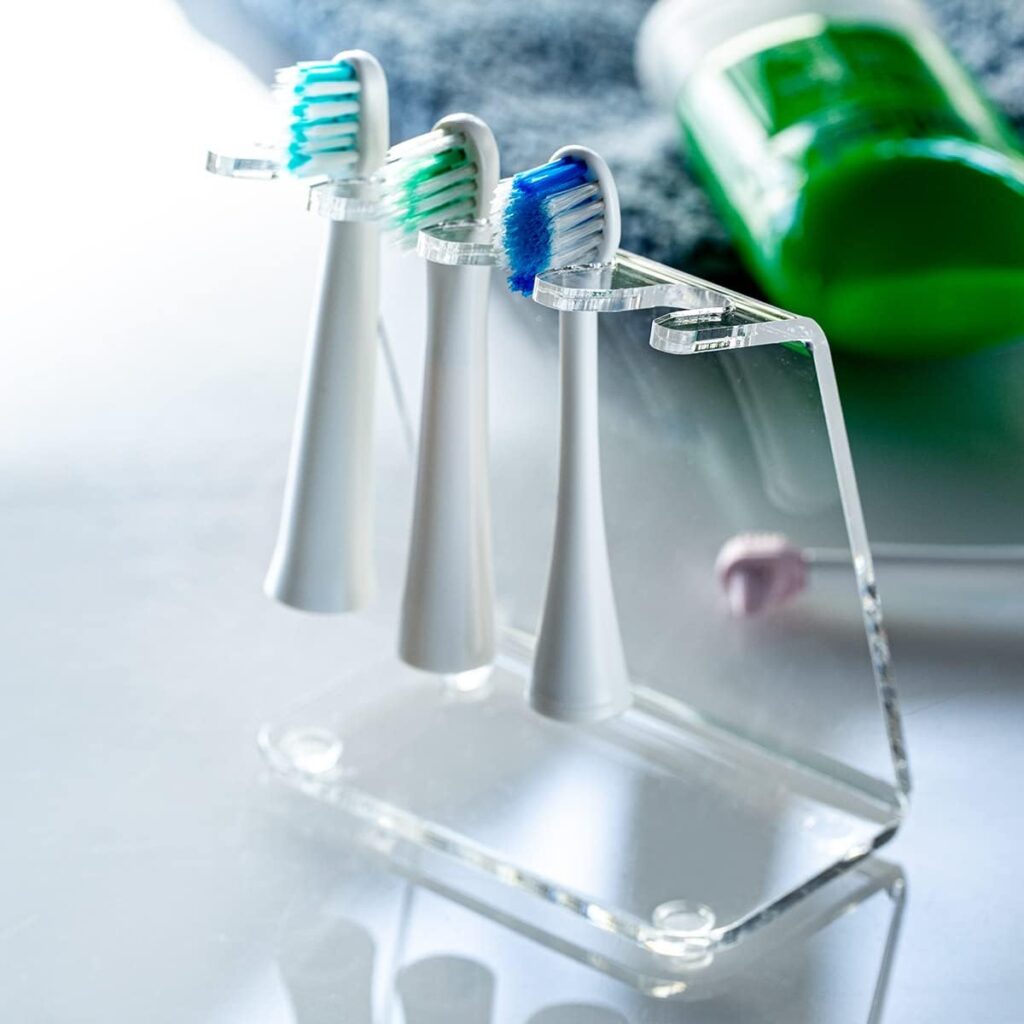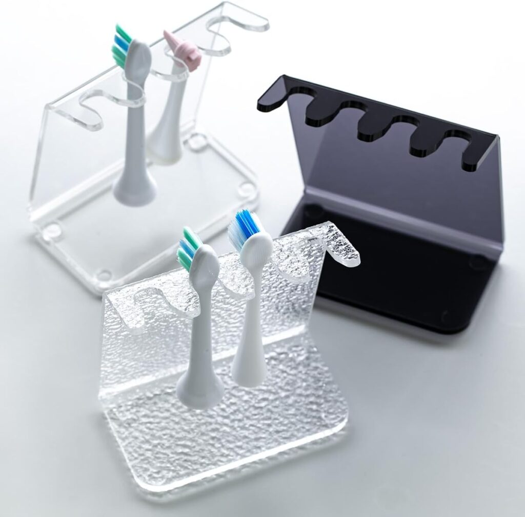 アクリル製で、電動歯ブラシのヘッド4本を掛けることができます。