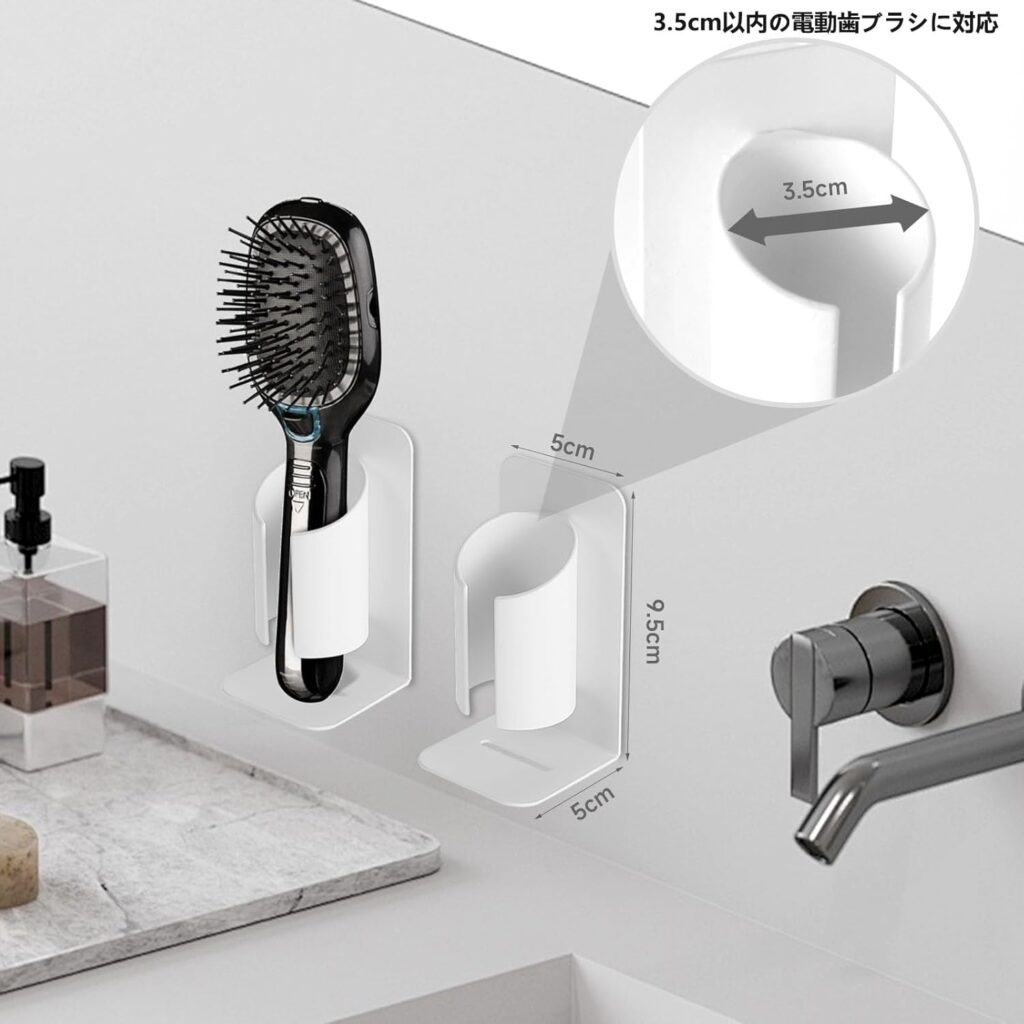 サイズは縦9.5×横5cmで、直径3.5cm以内の電動歯ブラシに適応します。
