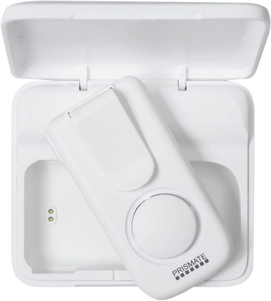 専用ポーチ付きで、ボタンを2回押すと起動する仕組みのため、持ち運び中の誤作動を防ぎます。