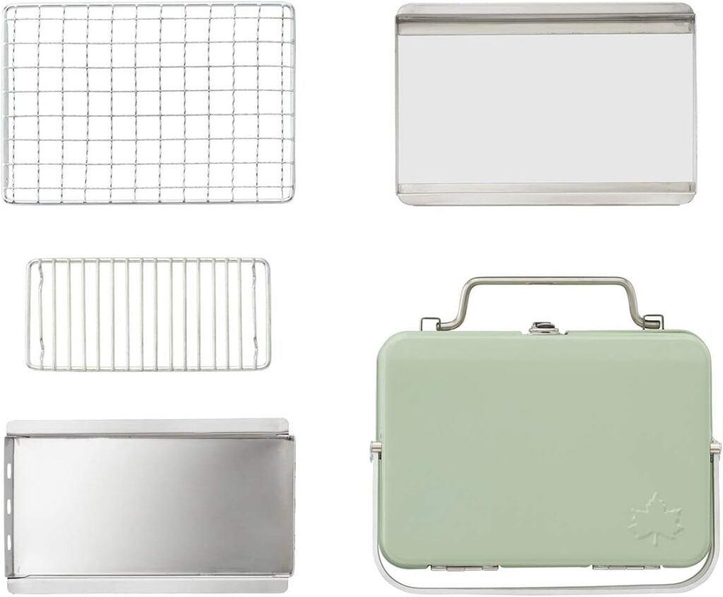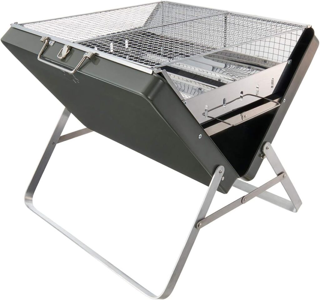 アタッシュケースを開いて組み立てると、グリル型の「焚き火台」が完成します。