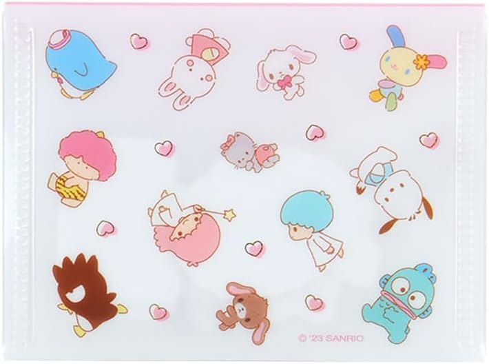 フラップ付きのケースで、さまざまなサンリオキャラクターが描かれています。