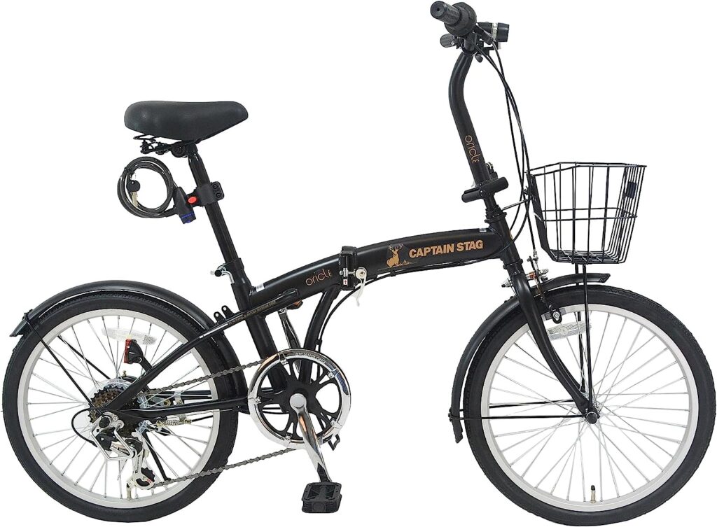 サイズは16インチで、上でご紹介した『eオリクル カゴ付き 折りたたみ自転車』と同じ〝CAPTAIN STAG(キャプテンスタッグ)〟の製品です。