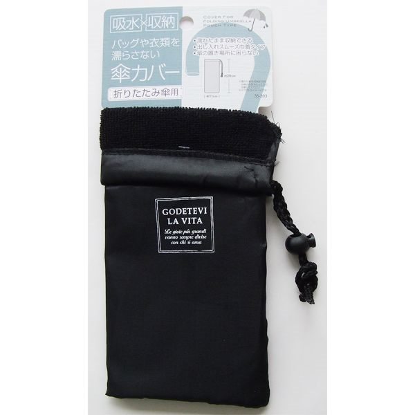 内側はマイクロファイバータオル生地、外側は防水性の高いナイロン素材でつくられているため、吸水率が高く、濡れた傘を入れたまま鞄の中に仕舞うことができます。