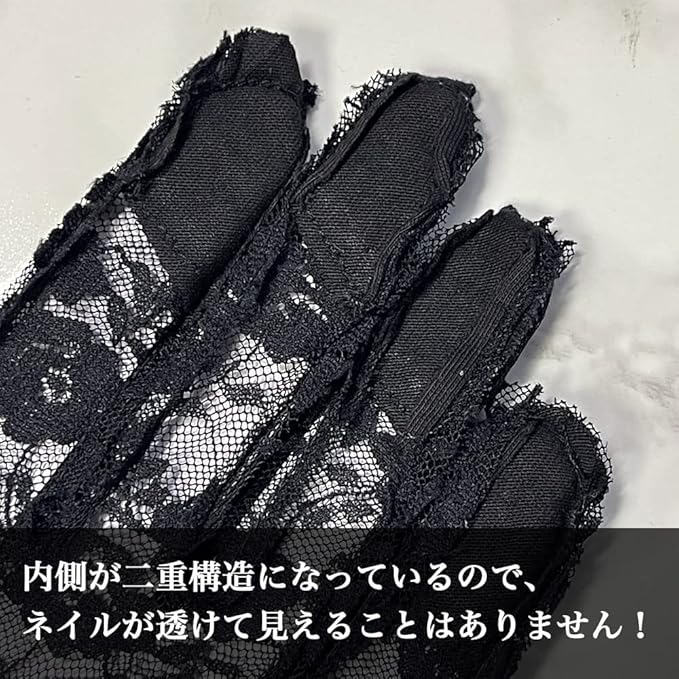 指先の内側に黒い布が付いているので派手なネイルでも隠れます。