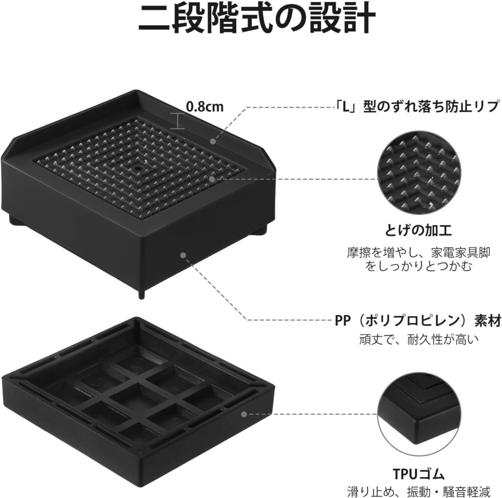 安定性の高い台形型で、耐荷重が最大で1,000kgもあるので、多くの家具・家電に使用できます。