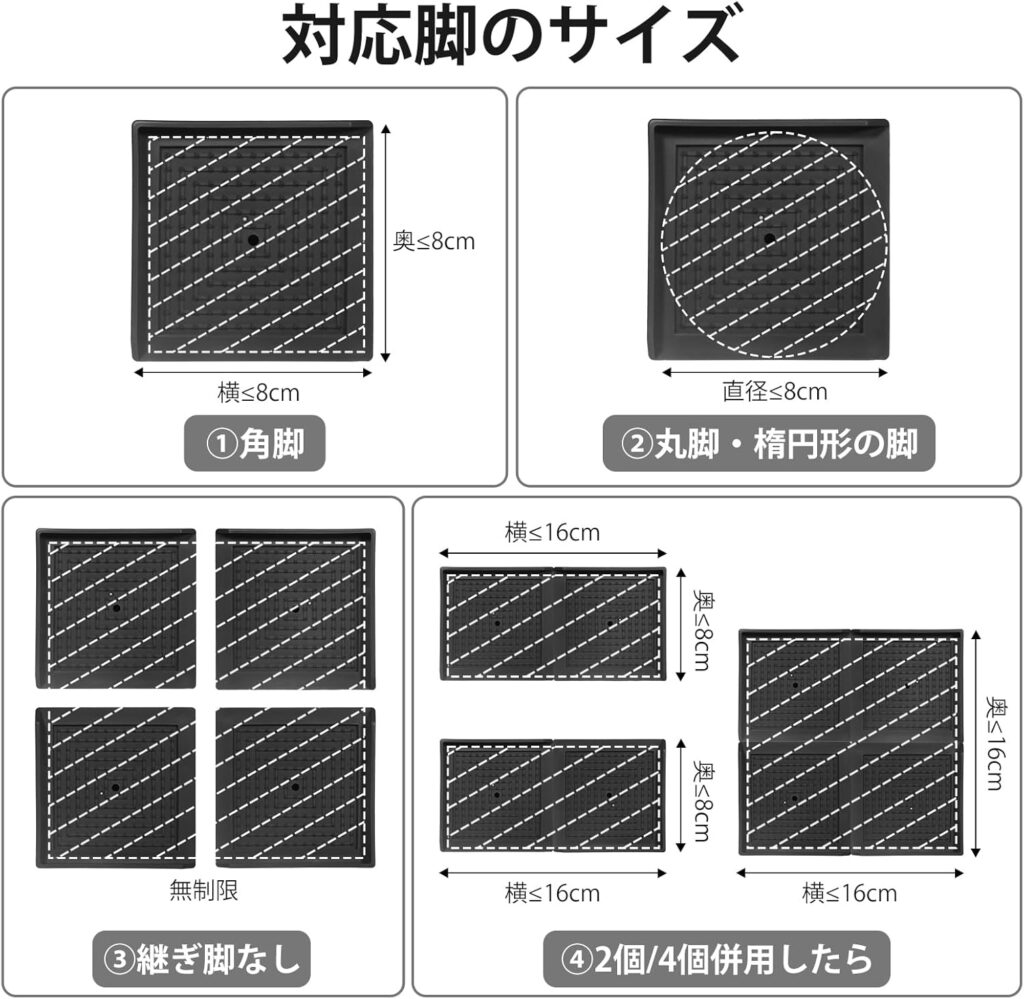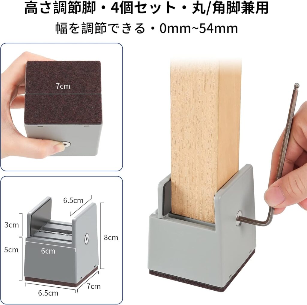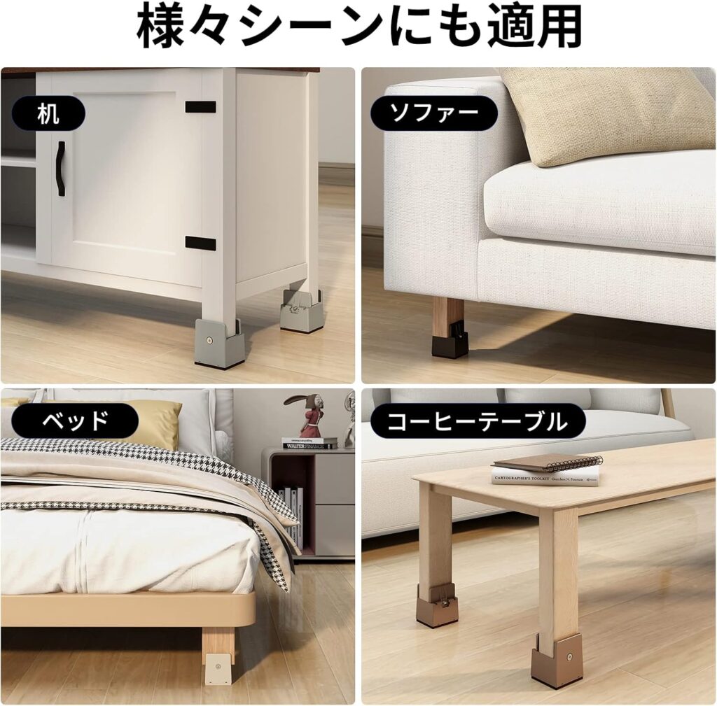 さまざまな家具の脚にフィットし、耐荷重も高く、なにより口コミ評価がとても高いので、「家具の高さを上げる調整器具」をさがしている方でとくべつこだわりのない場合は、こちらを選んでまず失敗はありません。