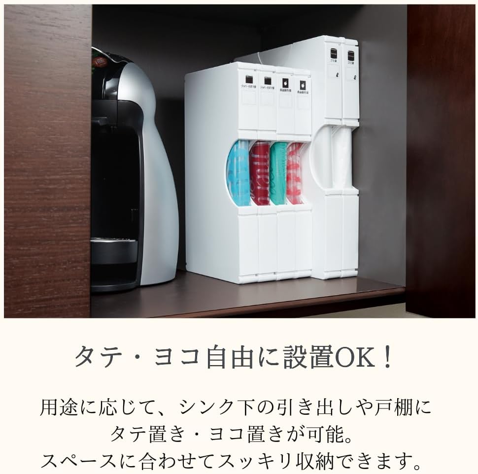 4つセットで、ゴミ袋の種類ごとに分けて保管しやすいです。