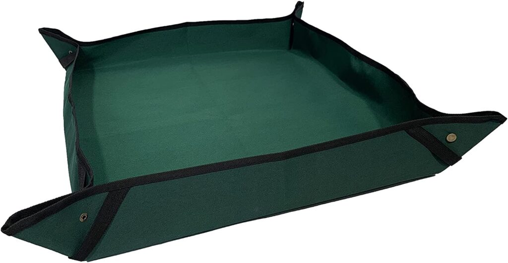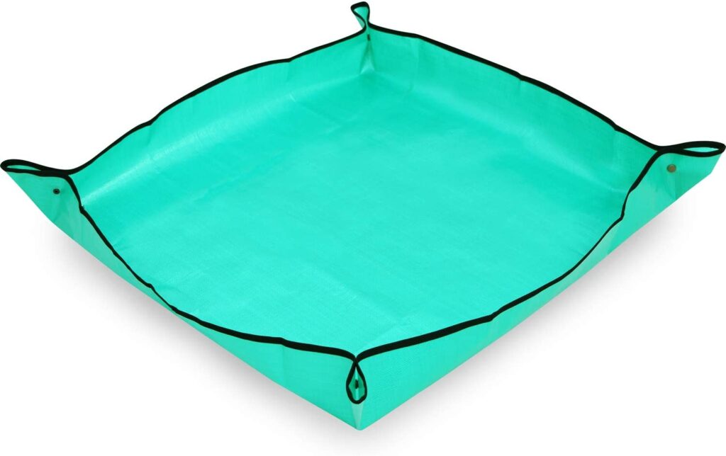 4隅を留めてトレー型として使えるものや、防水加工がされていて床を汚さず使えるもの、持ち手付きでシート上のものをこぼさず運べるものなど、さまざまな「園芸シート」が展開されています。
