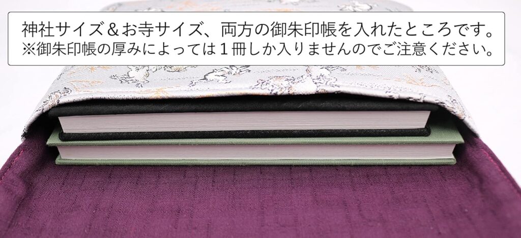 通常サイズのものであれば2つ御朱印帳が入るので、神社と寺で分けてる人にもおすすめです