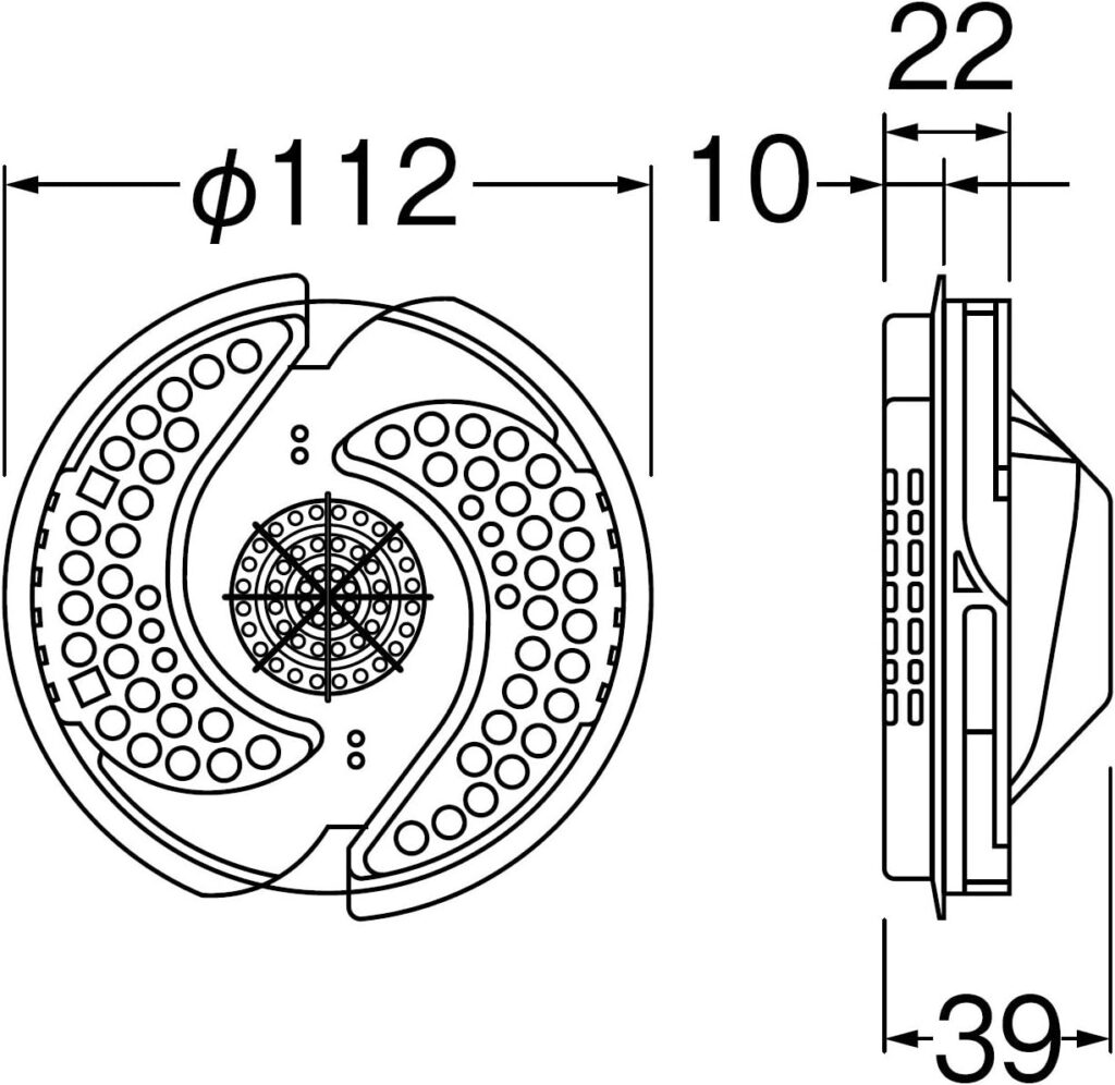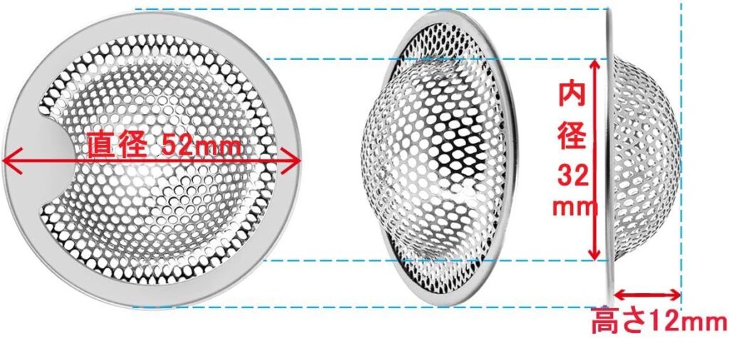 サイズは下画像のとおりで、排水溝の目皿(直径10~10.5cm)と交換して使用できます。