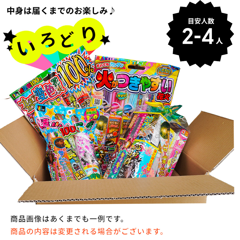 どんな種類の花火が入っているかは、開封後のおたのしみです。
