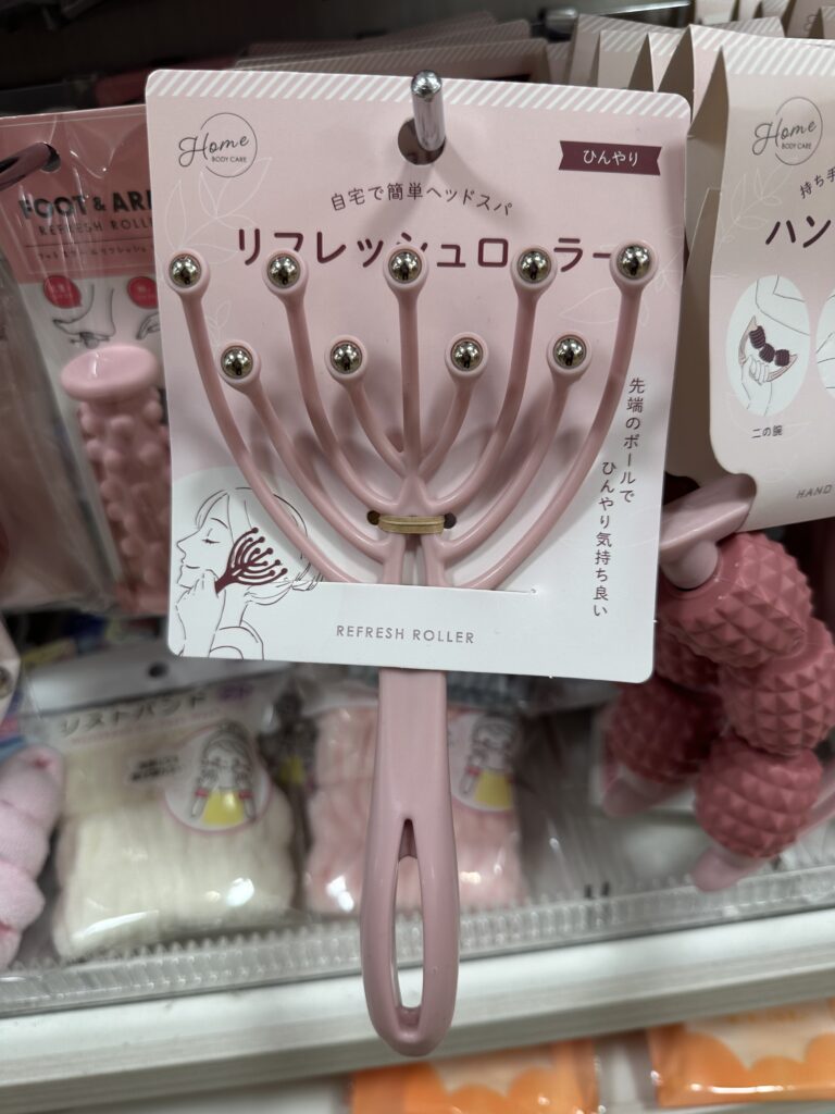 セリア(100均)では、『リフレッシュローラー』という「ヘッドマッサージャー」が販売されています。