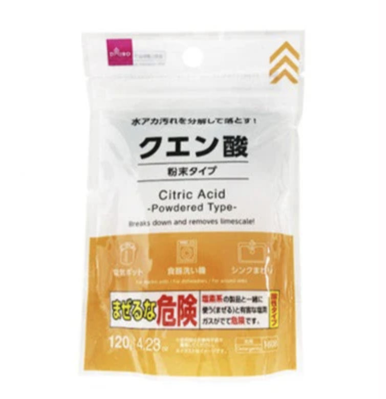 ダイソー(100均)では『クエン酸 粉末タイプ』が販売されていて、「加湿器フィルター用洗剤」としておすすめです。