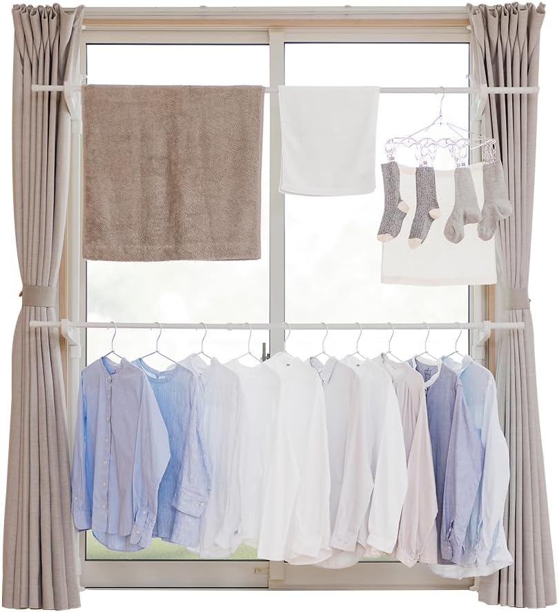 続いては、窓枠に設置するタイプの「部屋干し突っ張り棒」。