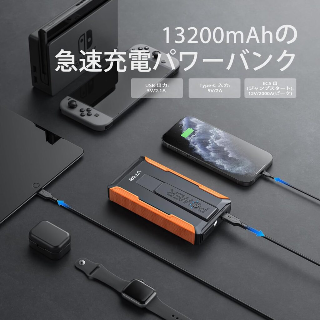 8.UTRAI エアーコンプレッサー搭載 ジャンプスターター 27,000mAh