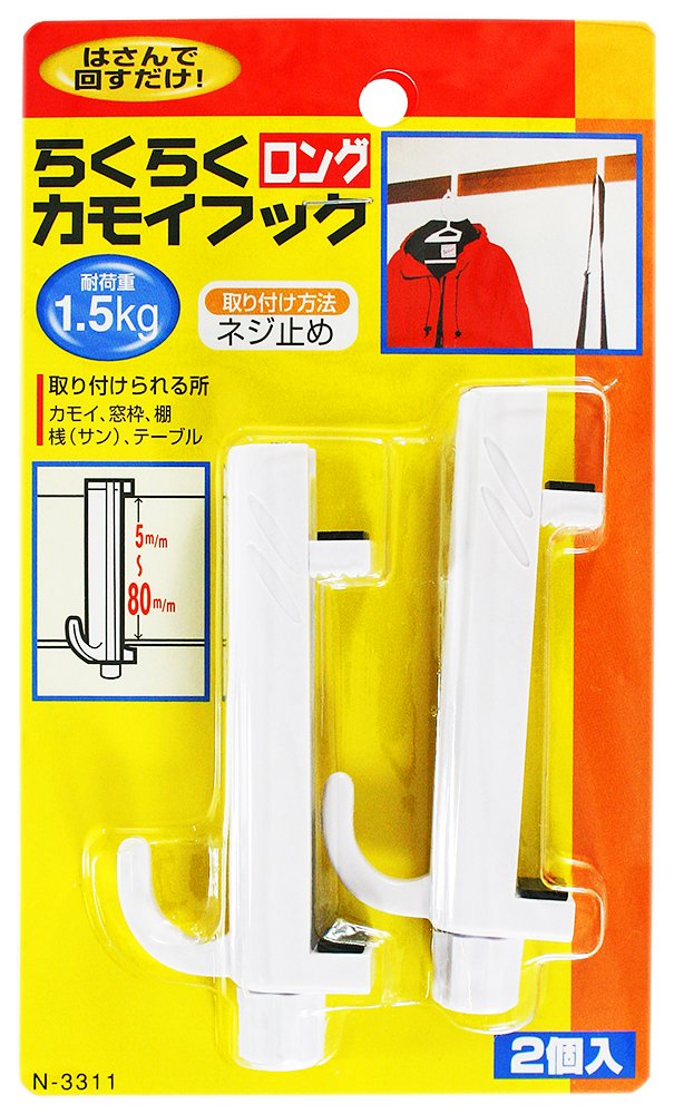 幅の広い鴨居に適応したロングタイプや、時計を掛けるのにおすすめな頑丈なつくりのもの、透明で目立ちにくいものなど、さまざまな「鴨居フック(長押フック)」が展開されています。