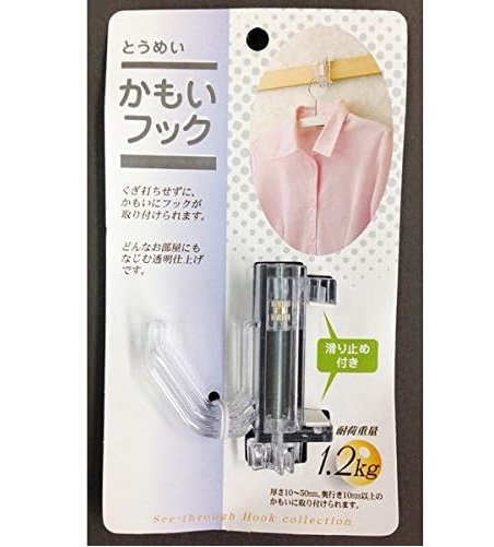セリア(100均)では、『透明で目立ちにくい かもいフック』という、クリア素材の「鴨居フック(長押フック)」が販売されています。