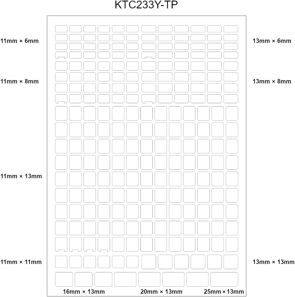 また、縦型キートップ用(縦13×横11mm)だけでなく、特殊キー用のステッカーもセットになっています。