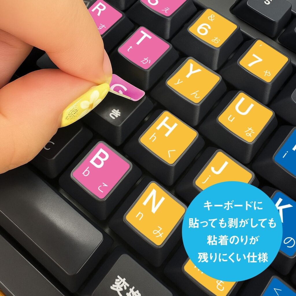 打ち間違いを防止でき、自由にアレンジしやすく、なにより口コミ評価がとても高いので、「キーボードステッカー」をさがしている方でとくべつこだわりのない場合は、こちらを選んでまず失敗はありません。