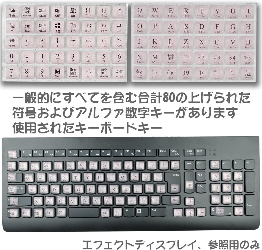 文字付きのステッカーで、印字が消えてしまったキーボードの補修などにおすすめです。