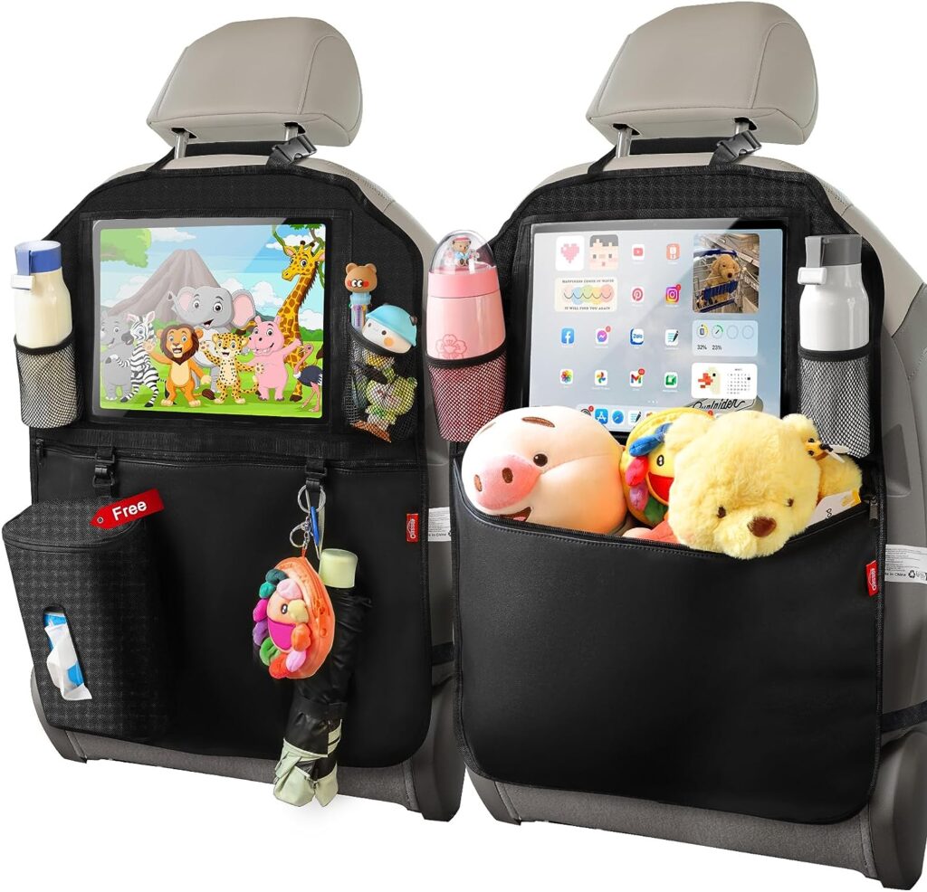 下画像のように、クリアポケットにはタブレットが収納できるので、子どもが後部座席に座ったときに退屈しません。