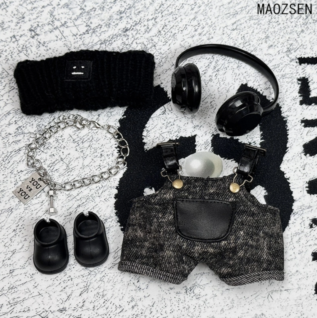 オーバーオールや靴、ヘッドホン、アクセサリなど5点がセットになっています。
