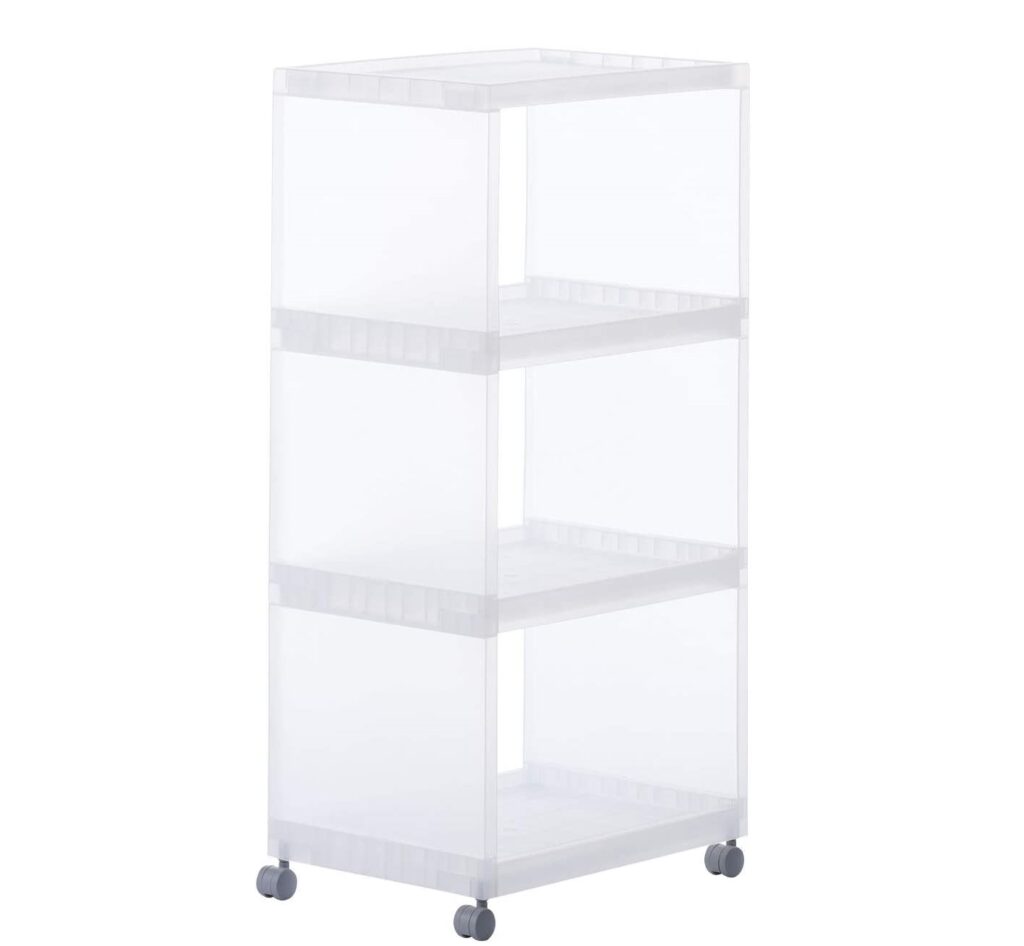 中身が見えやすく、キャスターにはストッパーが付いているので安全です。