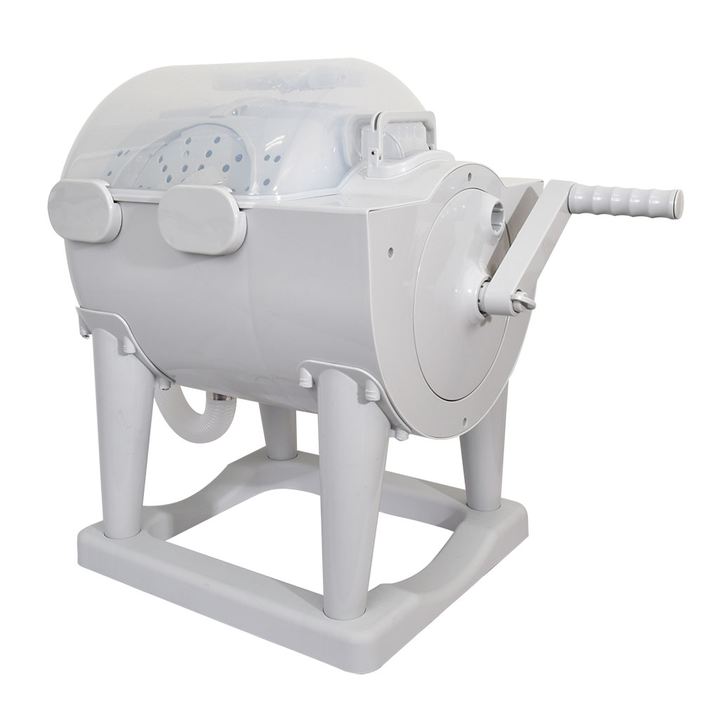 電力が必要なく、ハンドルを回すだけで洗濯できる「手動洗濯機」。