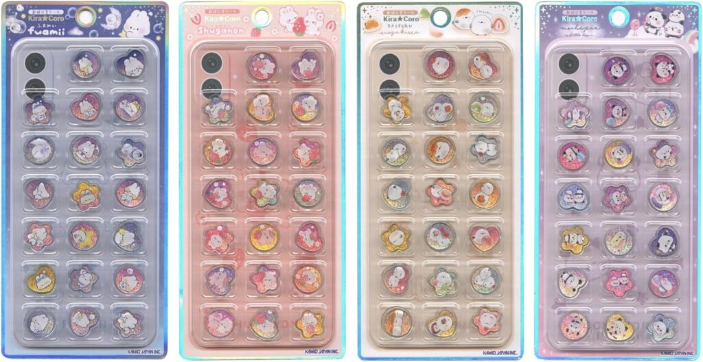 かわいい形のものや、サンリオ好きにおすすめのもの、スンスンが描かれたものなど、さまざまな「おはじきシール」が展開されています。