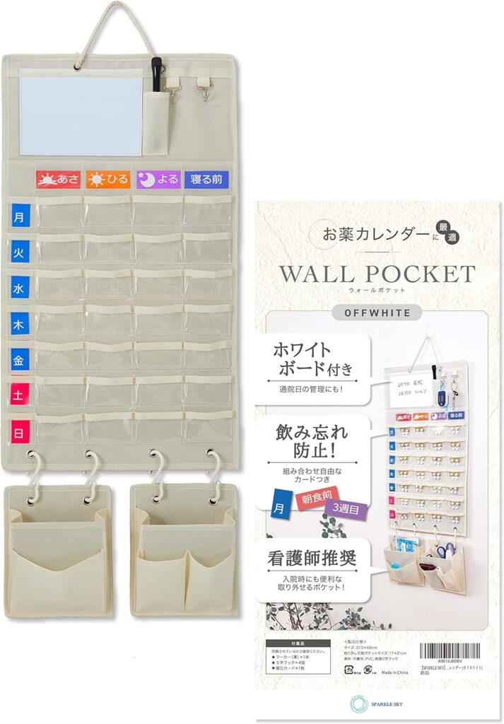 ポケットが大きく、薬が多めに出された時にも対応できるのが好印象ですし、リビングの壁にかけても気にならない色味で満足です。