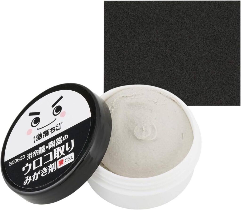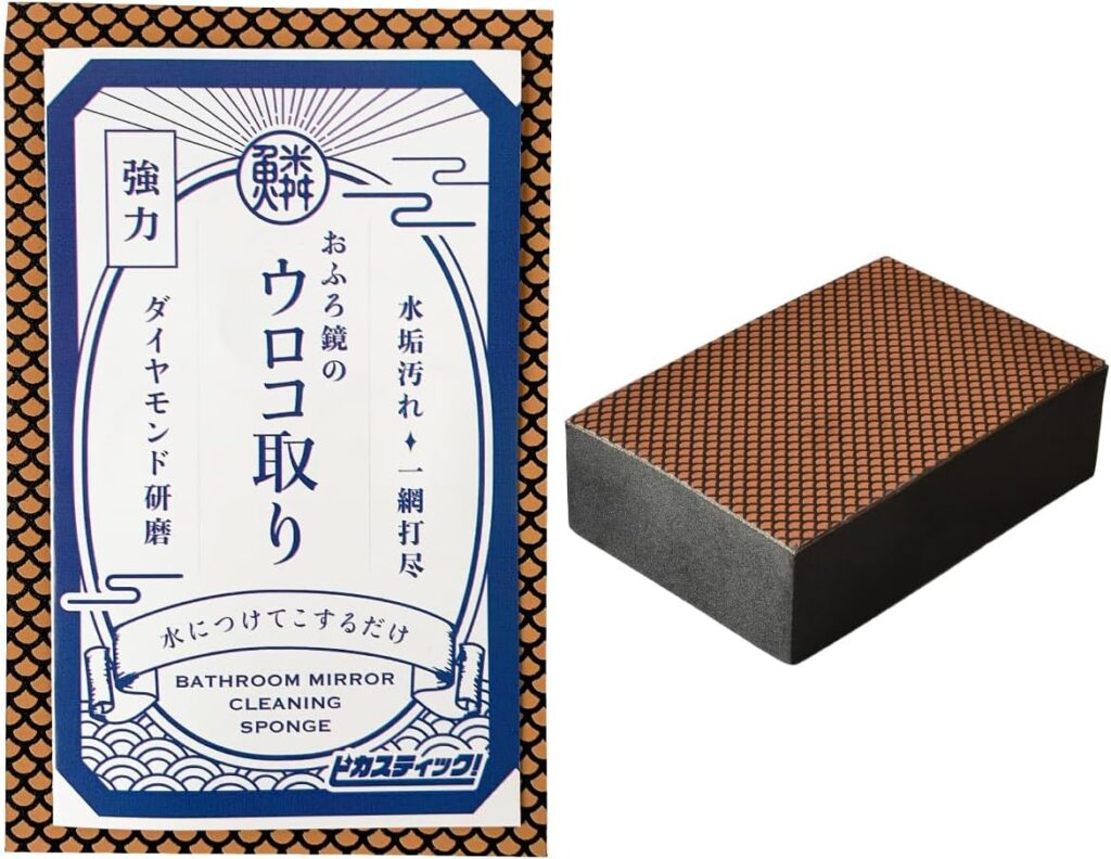 人口ダイヤモンド粒子が含まれていて、鏡にこびりついた水垢や頑固なうろこを削り取ってくれます。