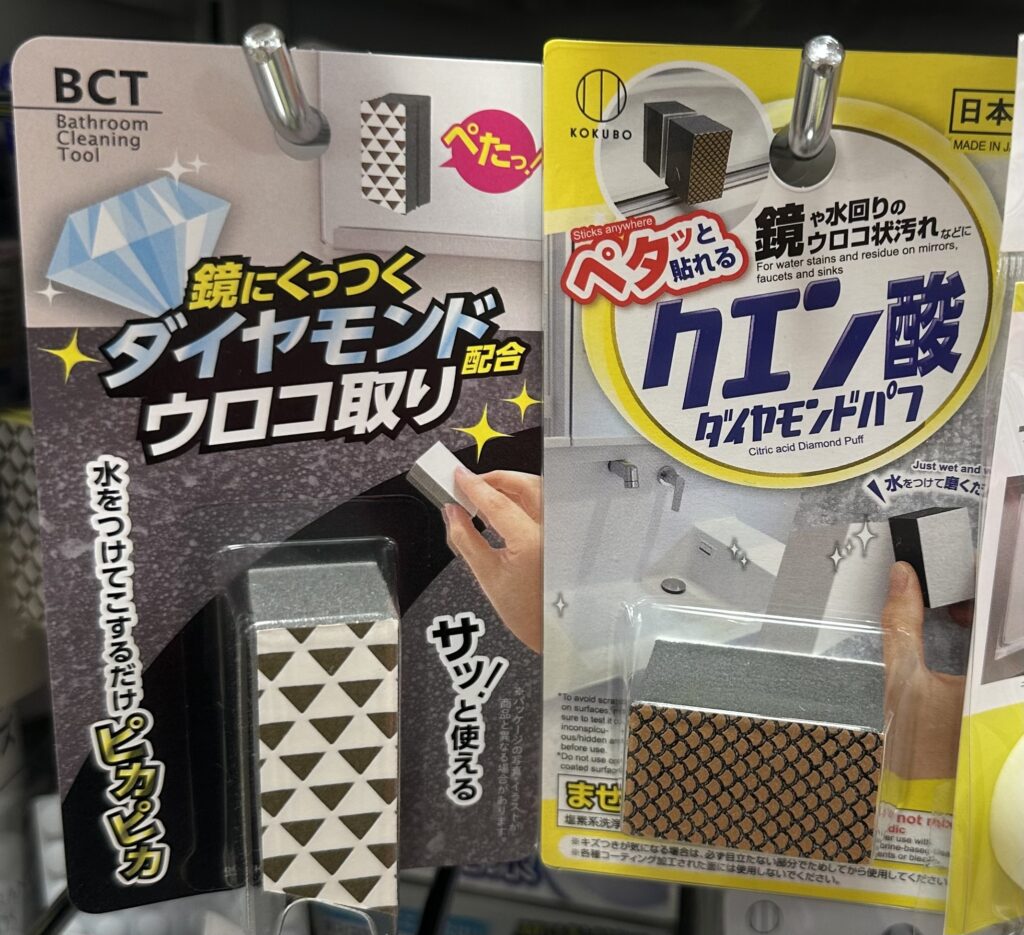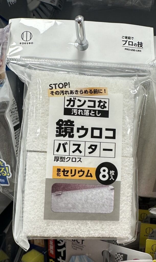 セリア(100均)では、『鏡ウロコバスター』や『ダイヤモンドウロコ取り』などの「鏡クリーナー」が販売されています。