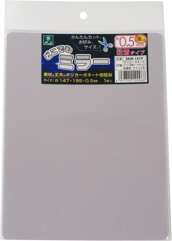 コーナン(ホームセンター)では、『TRUSCO(トラスコ) カッターで切れる軽量安全ミラー』という「ミラーシート」が販売されています。
