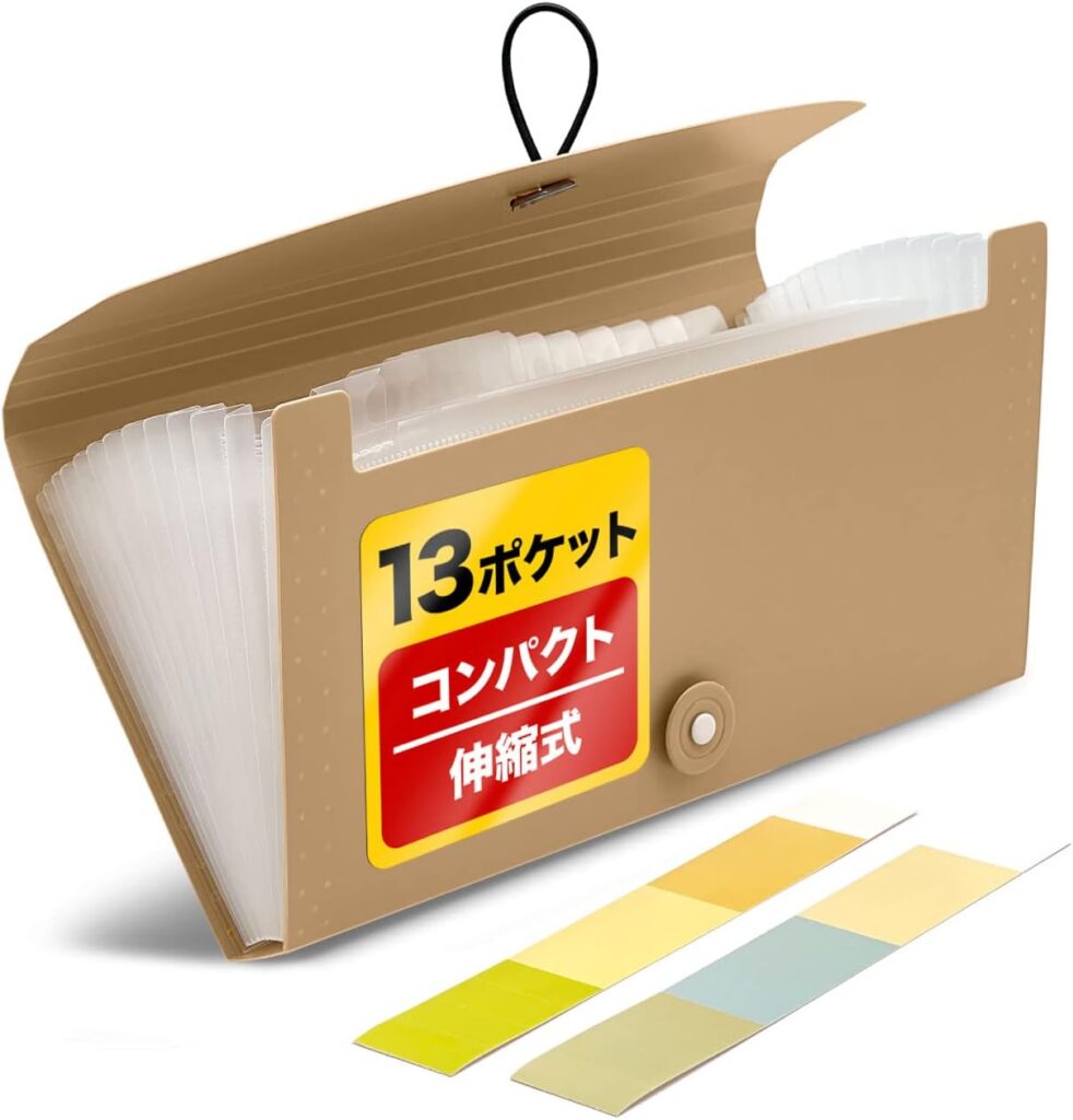 スリムで邪魔になりにくいものや、出し入れがしやすいじゃばらタイプのもの、仕分けがしやすいラベル付きのものなど、さまざまな「お金管理ファイル」が展開されています。