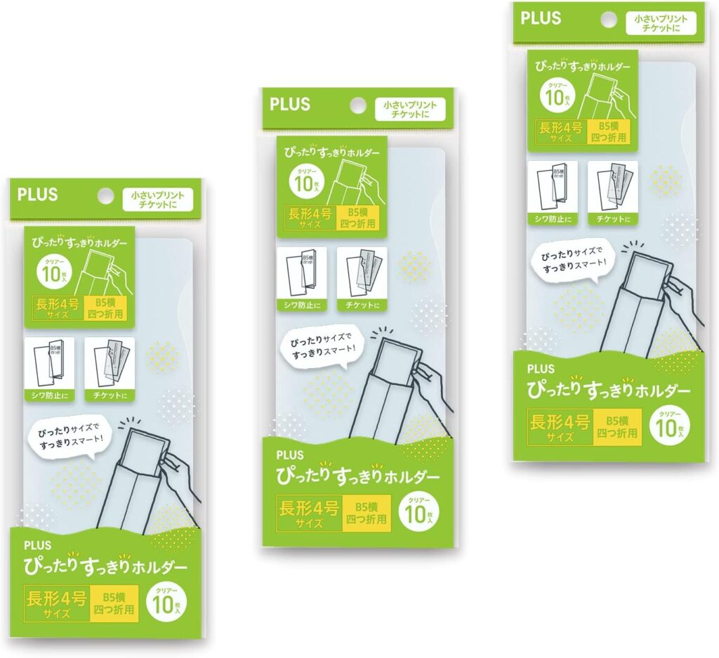 長形4号(チケット)は、幅8.5×高さ20cmのクリアファイルで、10枚×3セットの合計30枚入です。