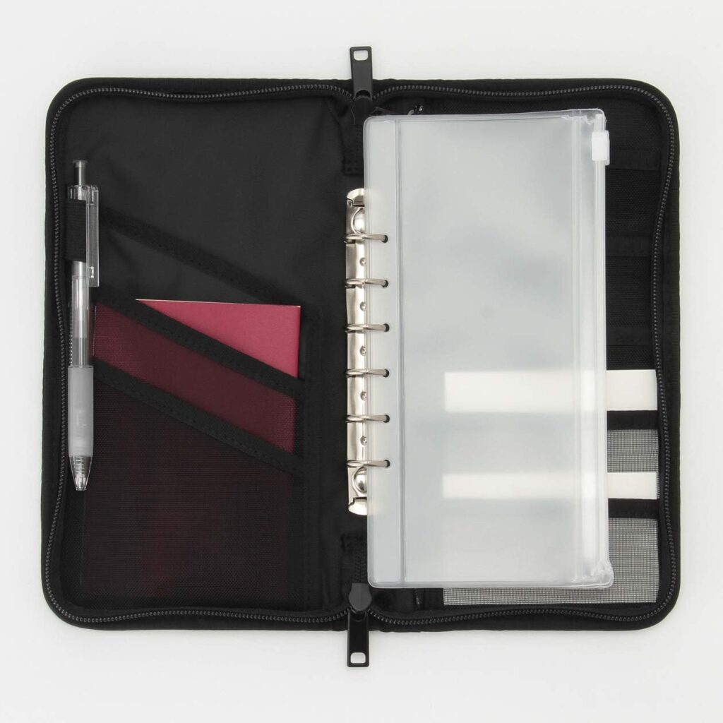 ジッパー付きファイル6枚を、マルチケースの中にセットして使用します。
