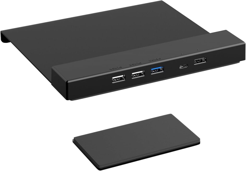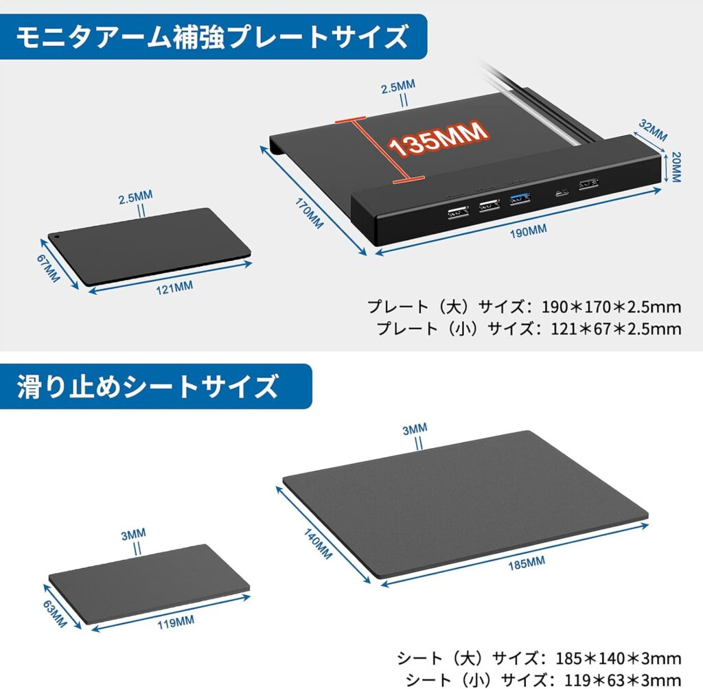モニターアームの補強だけでなく充電や接続もできる、便利な「モニターアーム補強プレート」です。