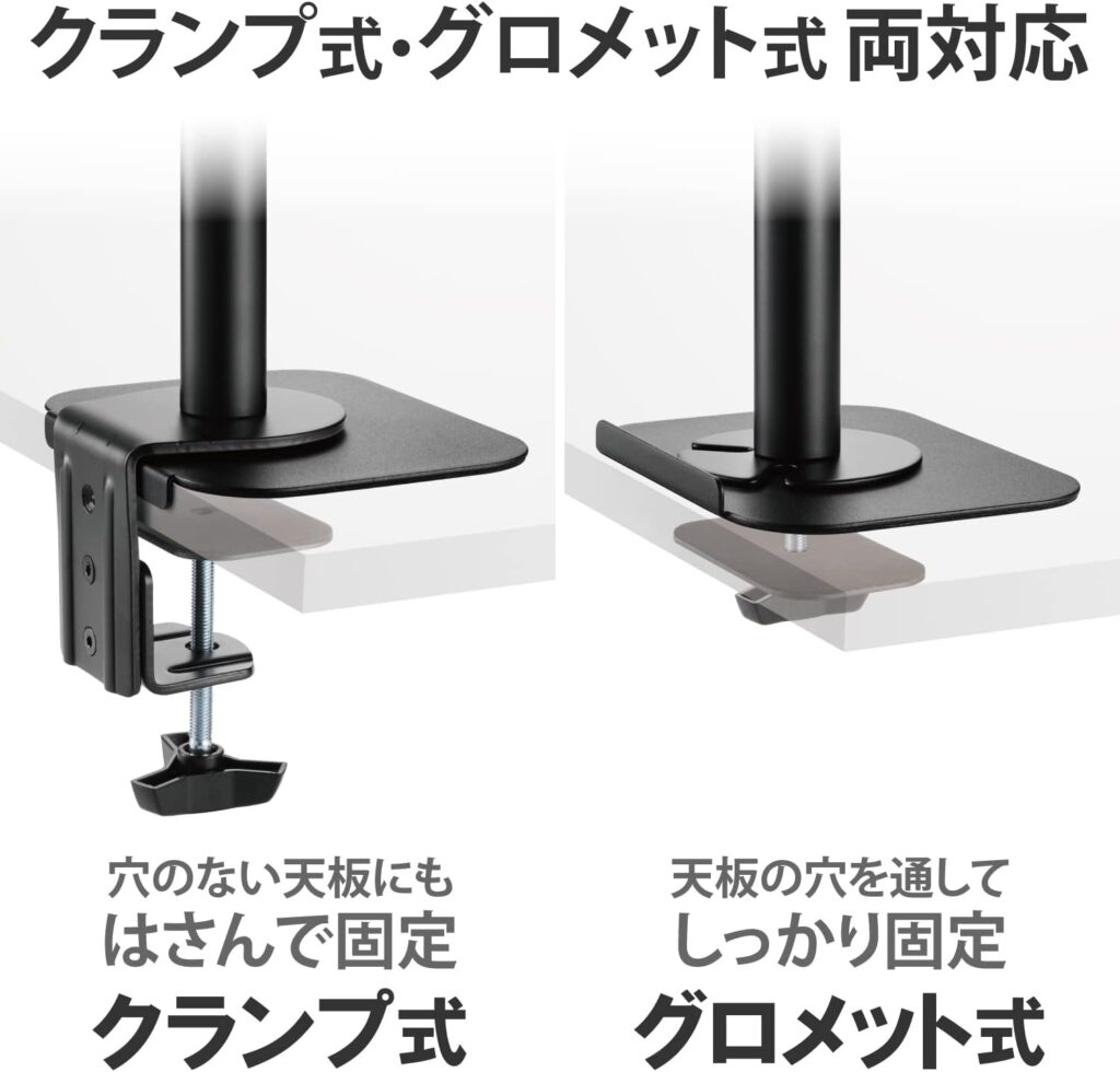 また、強度の高い剛性スチール製で、重量のあるモニターアームにも安心して使用できます。