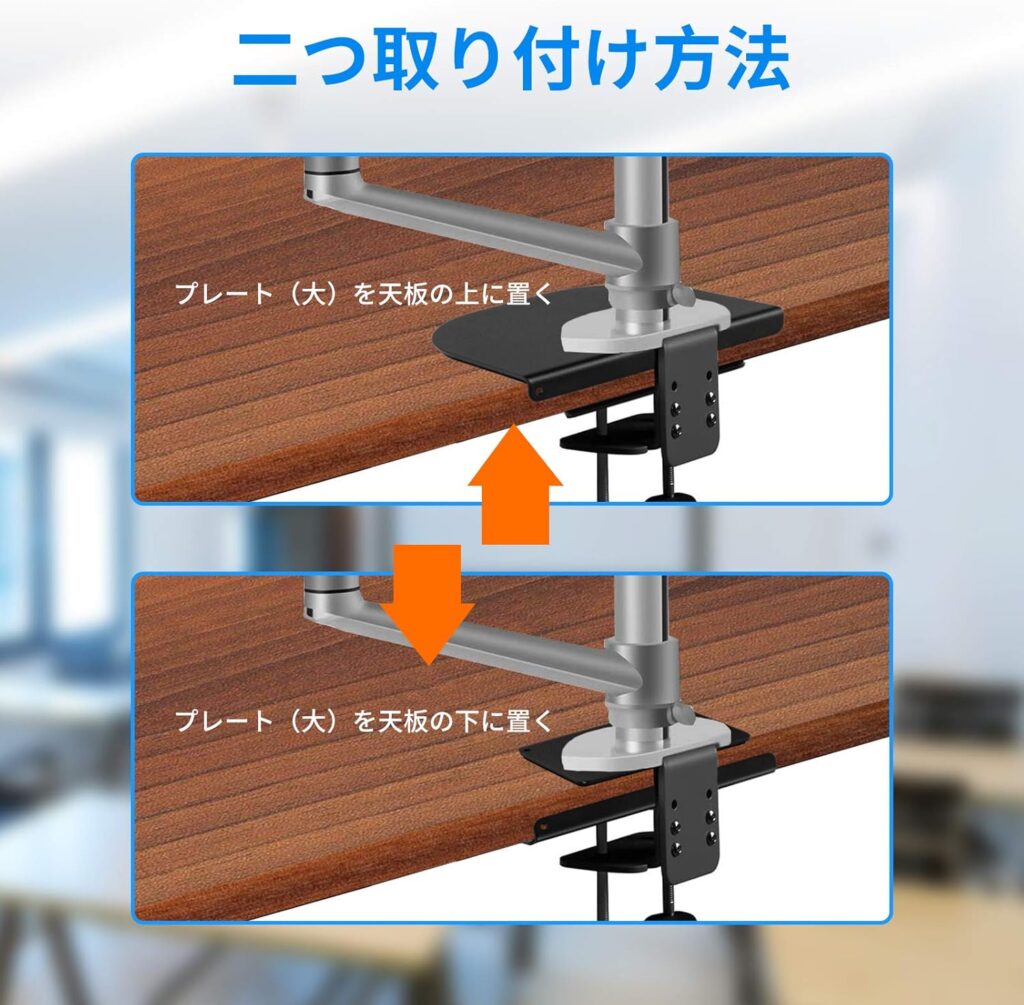 どちらを上にしても使用できるので、机の広さやアームの土台に合わせやすいです。
