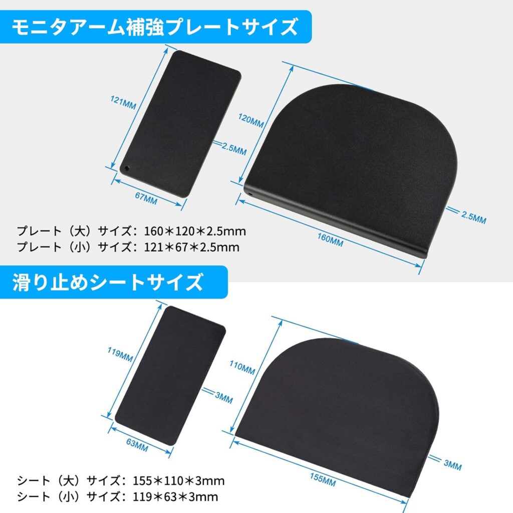 デスクやテーブルの天板を保護できる「モニターアーム補強プレート」。