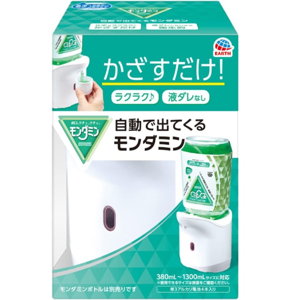使い方は、380~1300mlのモンダミンのボトルを逆さにしてセットするだけと簡単です。