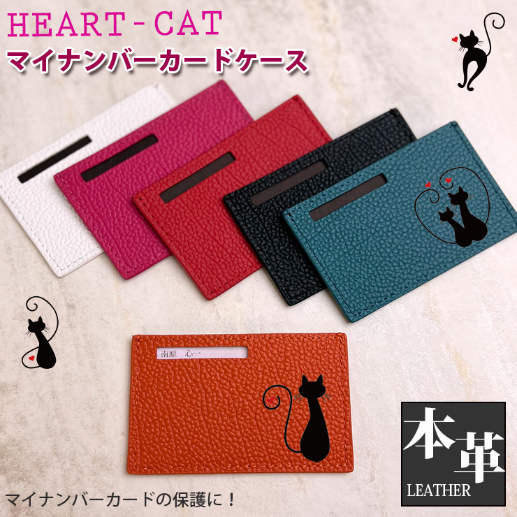 5.HEART-CATプリント 本革 マイナンバーカードケース