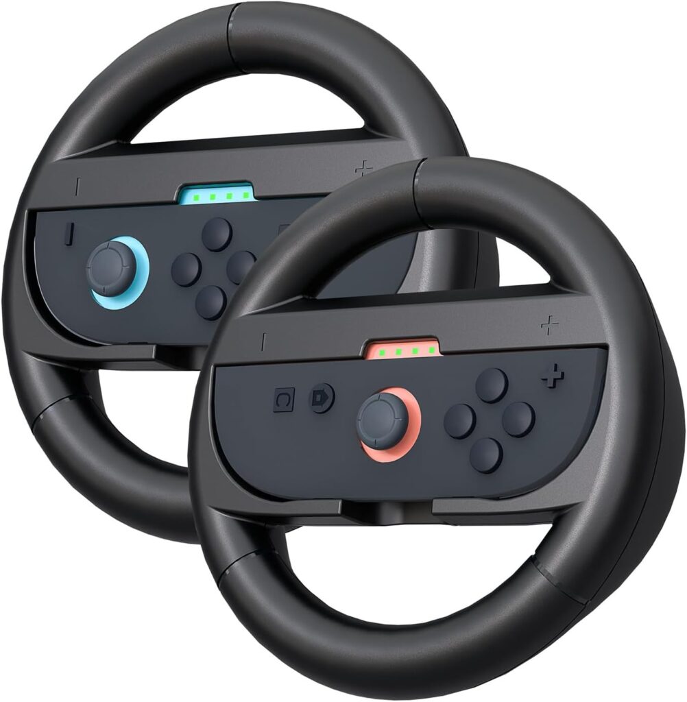 ハンドル型のグリップで、マリオカートなどレースゲームを本格的に楽しめます。