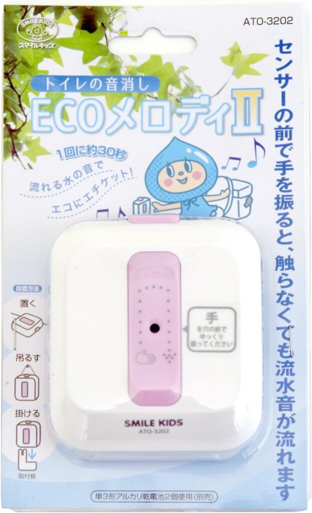 DCM(ホームセンター)では、『スマイルキッズ トイレの音消しECOメロディ II』という「音姫」が販売されています。